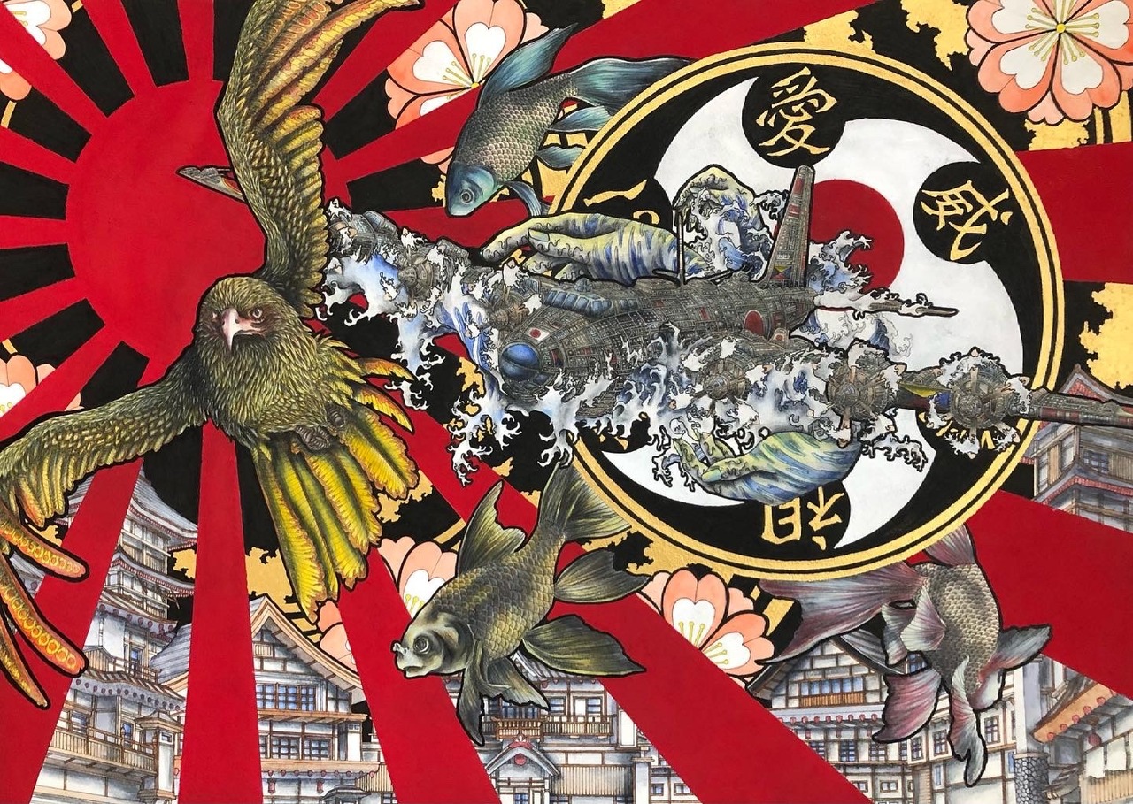 日本愛国芸術家 丸四季 金鵄輝ク日本図