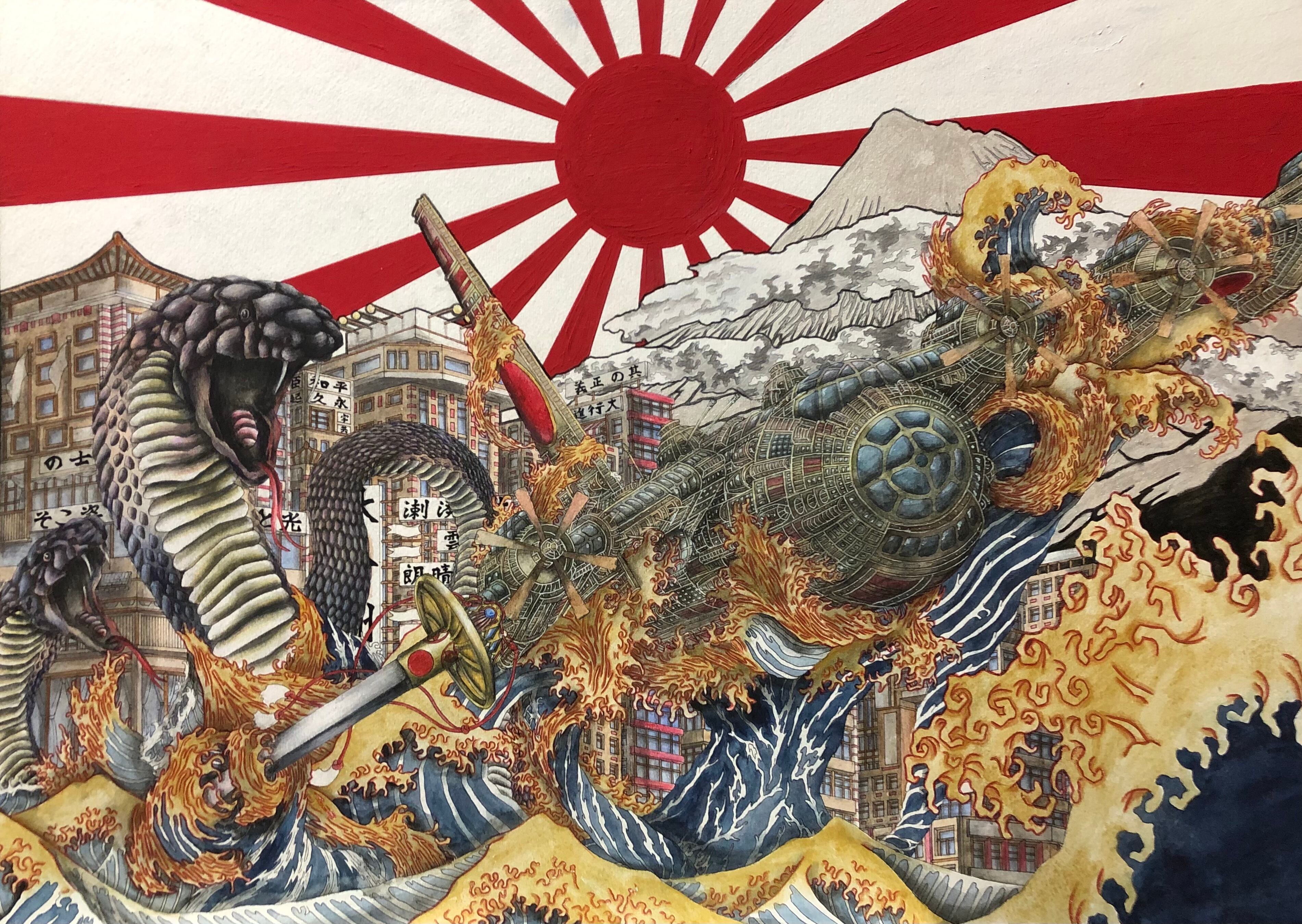 日本愛国芸術家 丸四季 日本明朗旭日絵